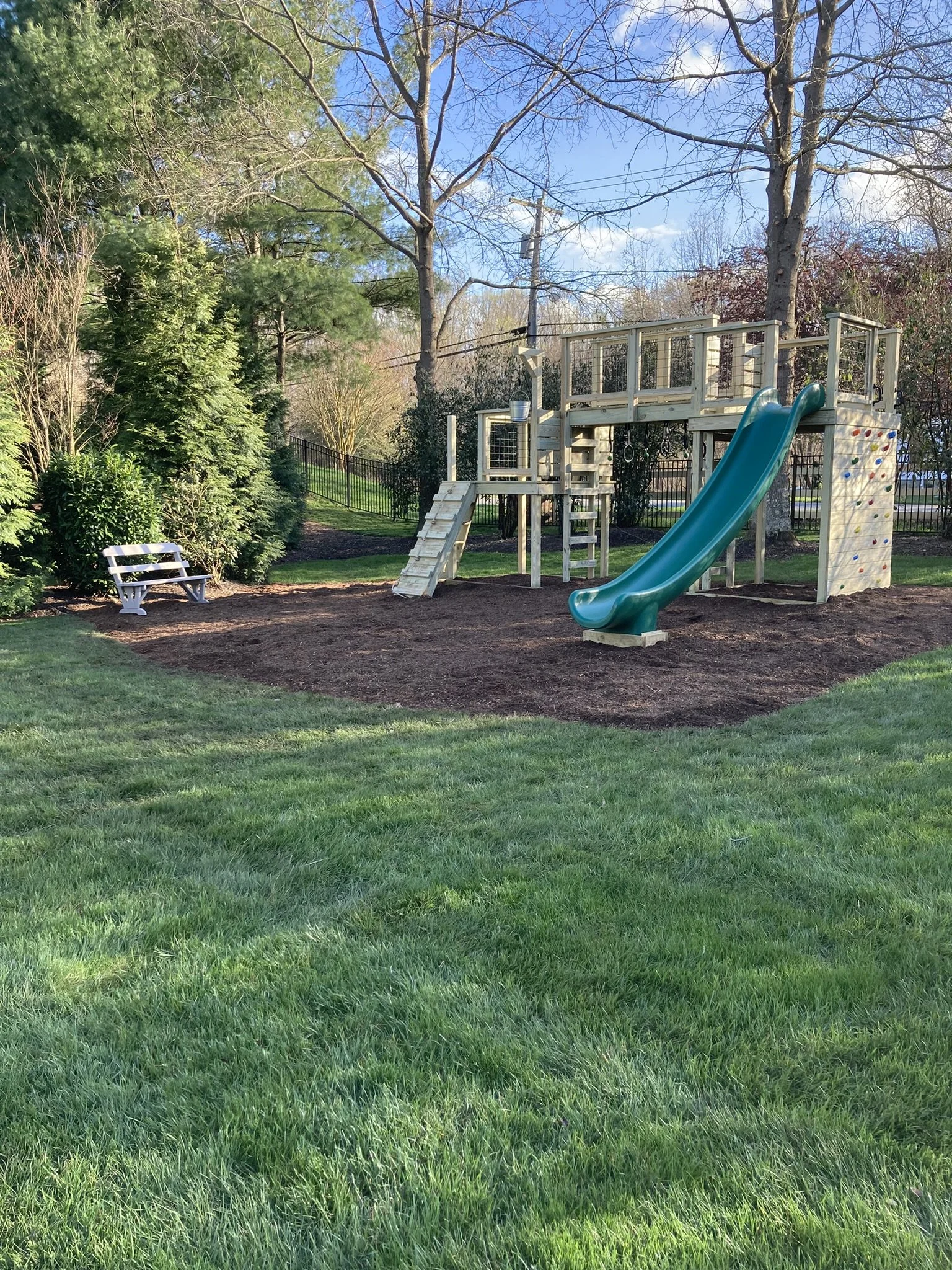 Treehouses. Playgrounds. Slides. Zip lines. Swings. Climbing Wall. Ladders.