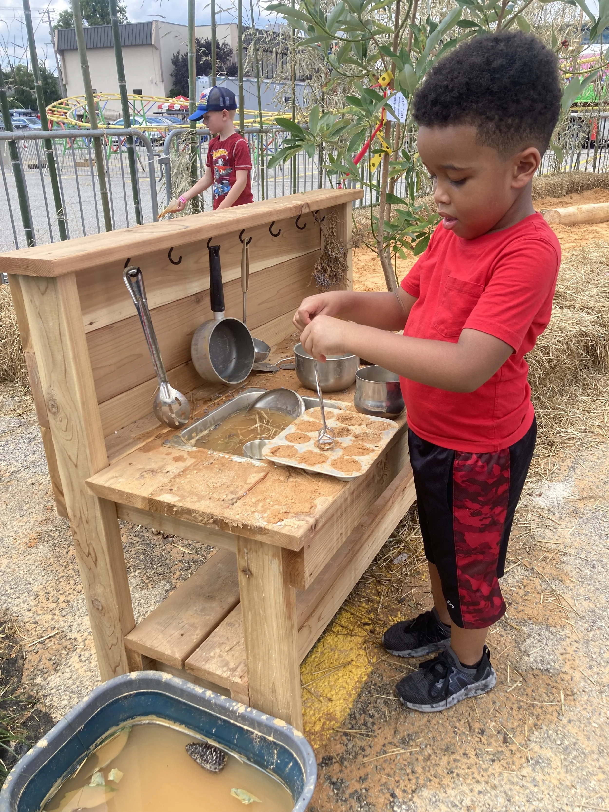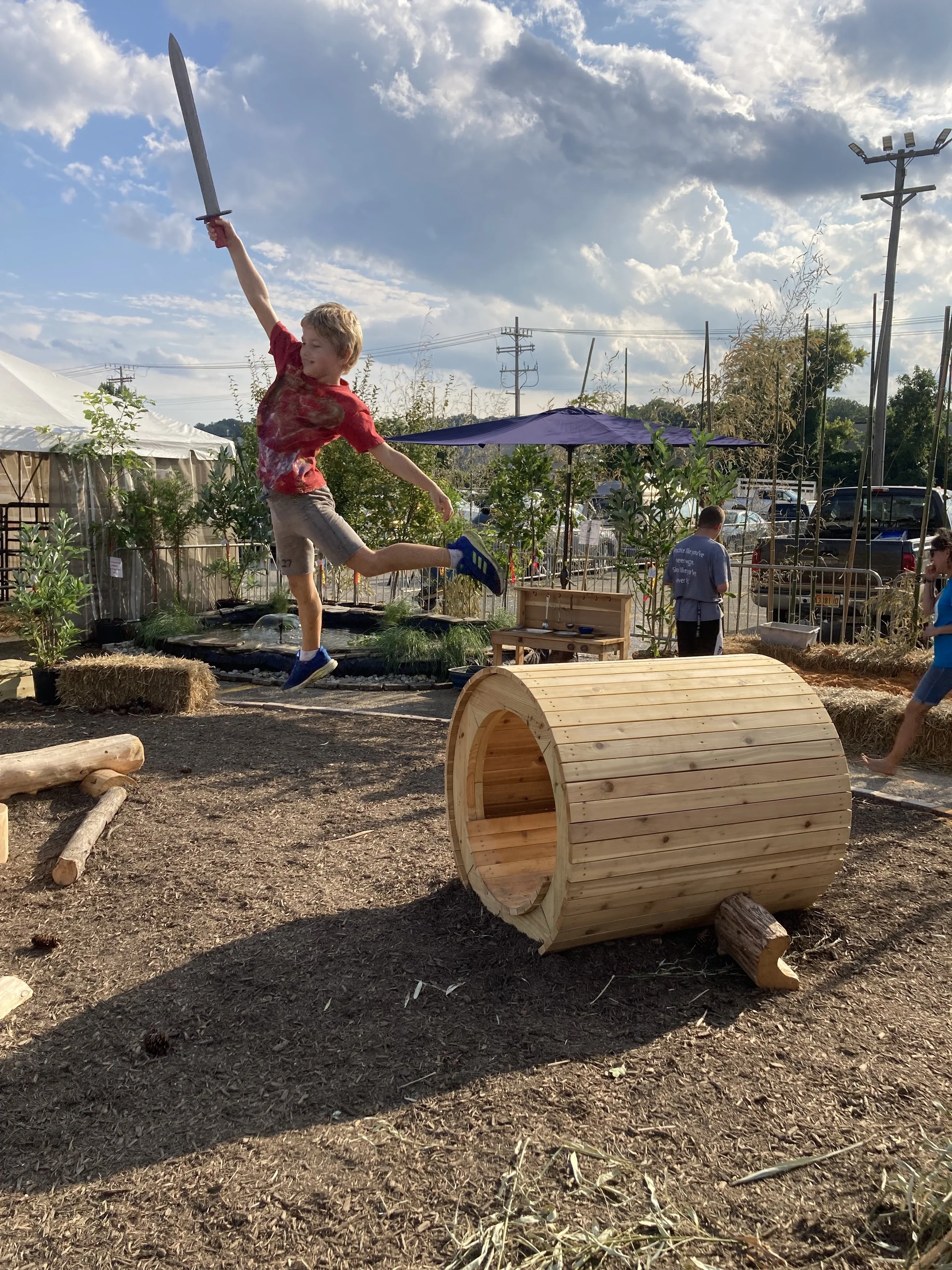 Featuring water play, mud kitchens, and log balance elements, this custom playscape encouraged hands-on creativity and outdoor exploration for kids of all ages.